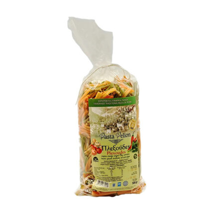 Συστατικά: Σιμιγδάλι σκληρού σίτου, σπανάκι, ντομάτα, μανιτάρια, πιπεριά Φλωρίνης, πιπεριά πράσινη, πατάτα, κρεμμύδι, πράσο, νερό από τις πηγές του Πηλίου